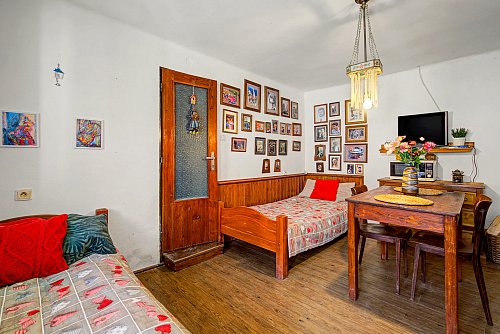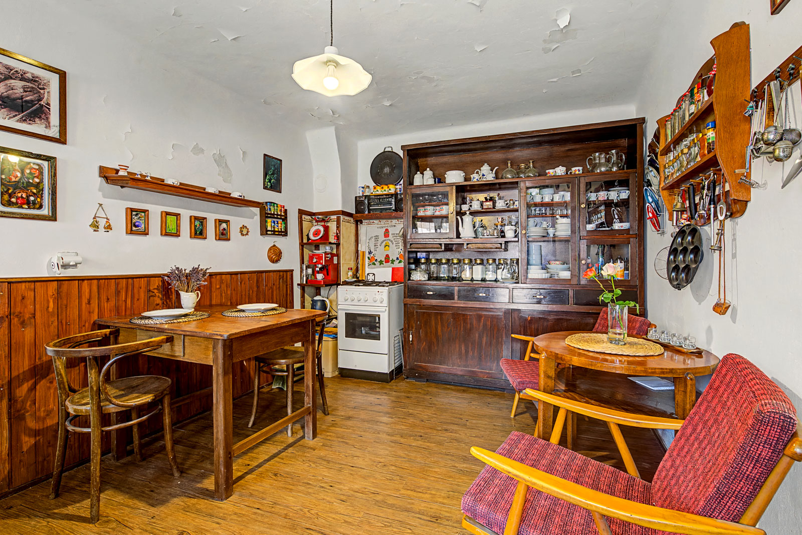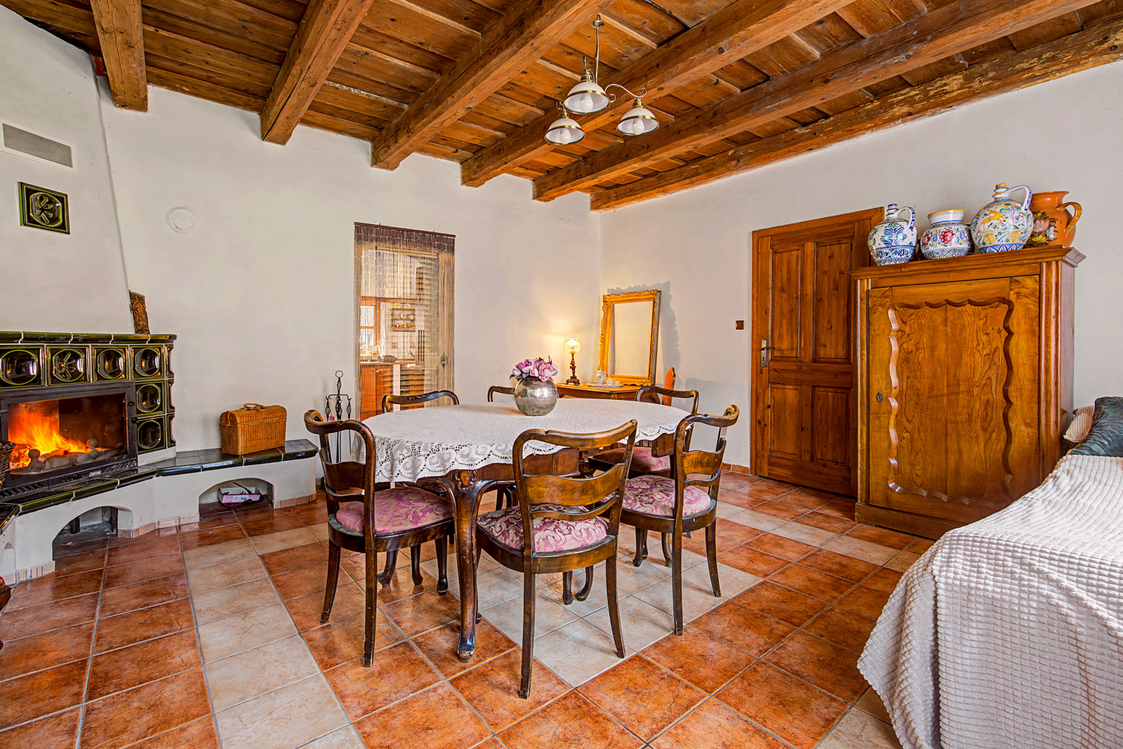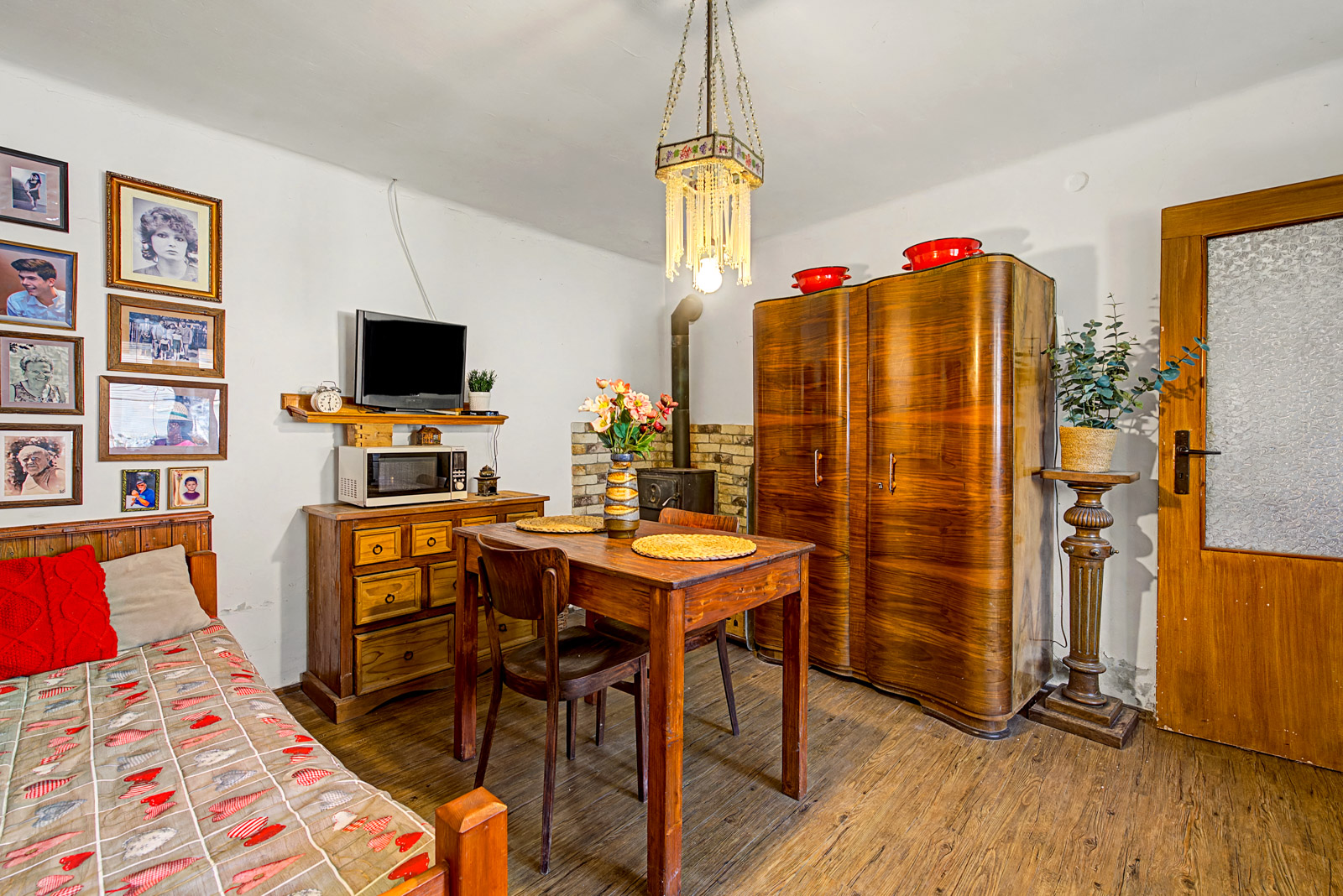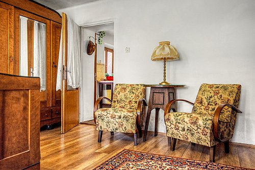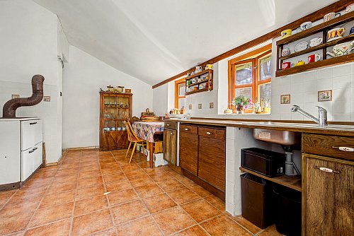 Interiér chalupy si zachoval množstvo pôvodných prvkov a je citlivo doplnený starožitným nábytkom, ktorý podčiarkuje autentickú atmosféru vidieckeho bývania a nesie v sebe príbehy minulosti. Dom tak ponúka ideálny základ pre víkendovú chalupu, rekreačné bývanie alebo citlivú rekonštrukciu, pri ktorej sa moderný komfort prirodzene snúbi s úctou k tradíciám.