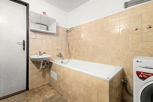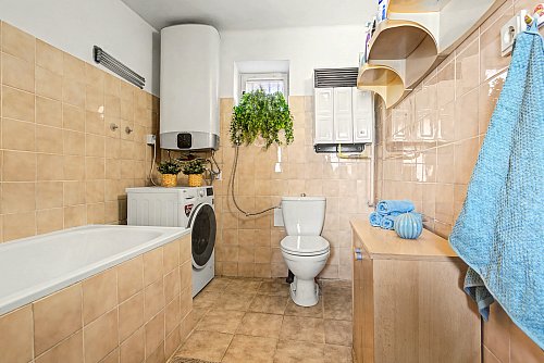 Pravá časť domu je prístupná cez útulnú kuchyňu, vybavenú kuchynskou linkou s dresom, plynovým sporákom a priestorom na stolovanie. Z kuchyne sa prechádza do prednej spálne aj do zadnej izby. Na ňu nadväzuje kúpeľňa, plne vybavená vaňou, umývadlom, toaletou, práčkou a zásobníkom na teplú vodu, čo zabezpečuje základný komfort bývania. Za kúpeľňou sa nachádza priestranná komora, ideálna na uskladnenie úrody z vlastnej záhrady, s možnosťou priameho výstupu na dvor.