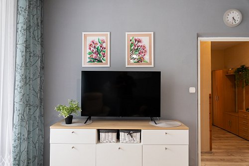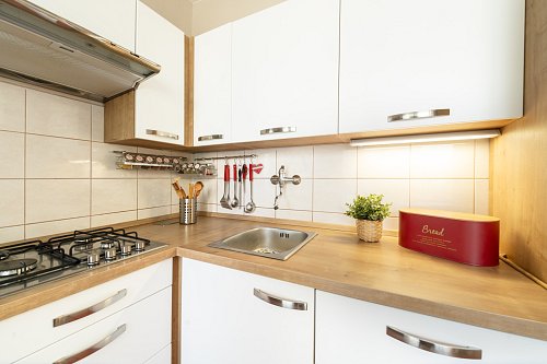 Nehnuteľnosť sa predáva kompletne zariadená. Všetky miestnosti zostávajú vo vybavení tak, ako sú zobrazené na fotografiách. Kuchyňa je vybavená kuchynskou linkou vyrobenou na mieru, ktorá zahŕňa plynový varič, elektrickú rúru, digestor a chladničku. Nábytok a zariadenie sú súčasťou predaja a nový majiteľ získa byt pripravený na okamžité nasťahovanie bez nutnosti ďalších investícií do zariaďovania.