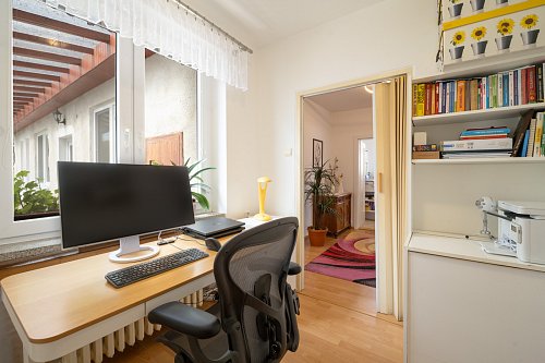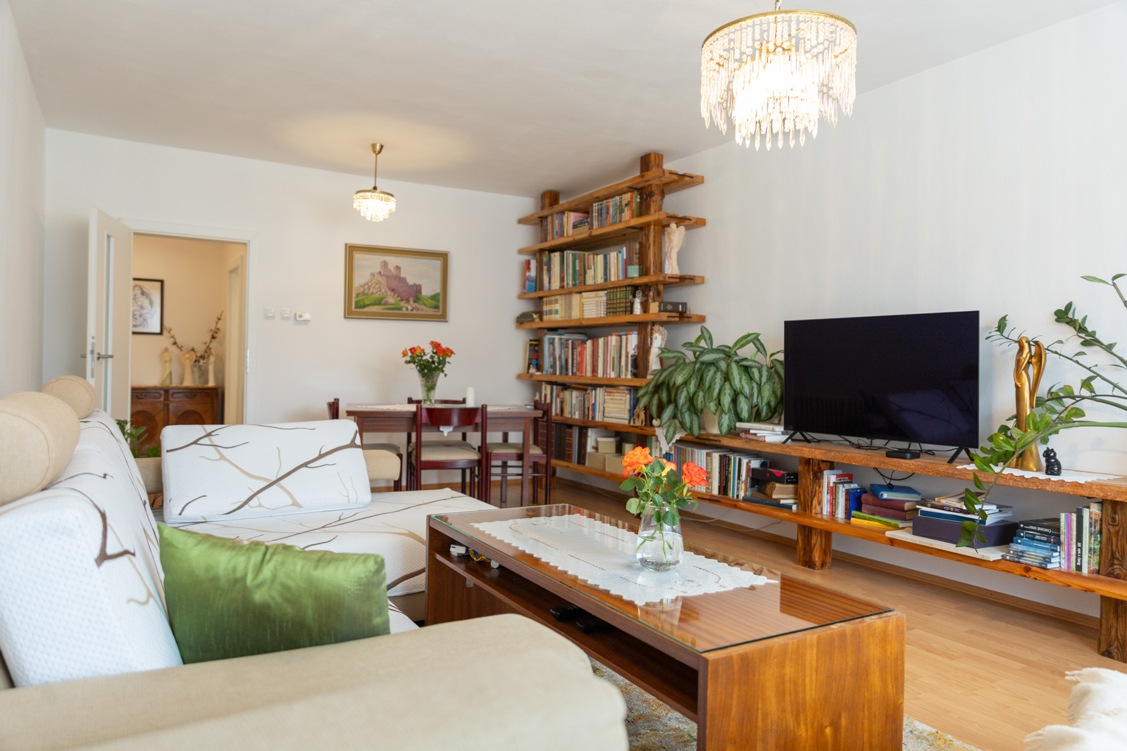 Nehnuteľnosť sa predáva čiastočne zariadená. Kuchyňa je kompletne vybavená kuchynskou linkou so vstavanými spotrebičmi (nová umývačka riadu, plynový sporák, elektrická rúra, mikrovlnka a digestor). Súčasťou je aj praktický kuchynský pultík a rohová sedacia súprava so stolom. Na chodbe sa nachádza vstavaná skriňa s rohovou skrinkou na topánky. Jedna izba zostáva kompletne zariadená - obsahuje posteľ, komodu, skriňu a stôl so stoličkami. V spálni je umiestnená vstavaná skriňa. Ostatný nábytok nie je súčasťou predaja.