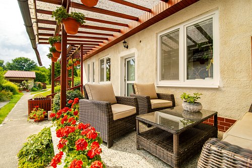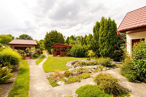 Pozemok ponúka nielen dostatok priestoru, ale aj množstvo praktických a oddychových prvkov. Priamo za domom sa nachádza veľký altánok, ideálny na rodinné stretnutia, letné grilovanie či pokojné večery v súkromí záhrady. K dispozícii je aj veľký skleník, ktorý zostáva súčasťou predaja a umožňuje celoročné pestovanie zeleniny či byliniek.