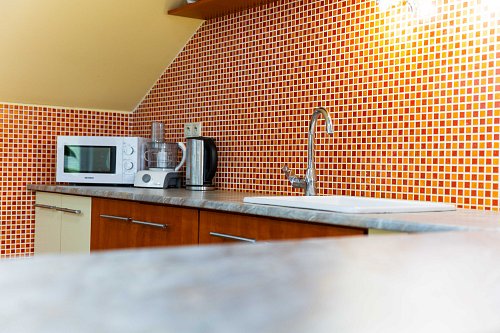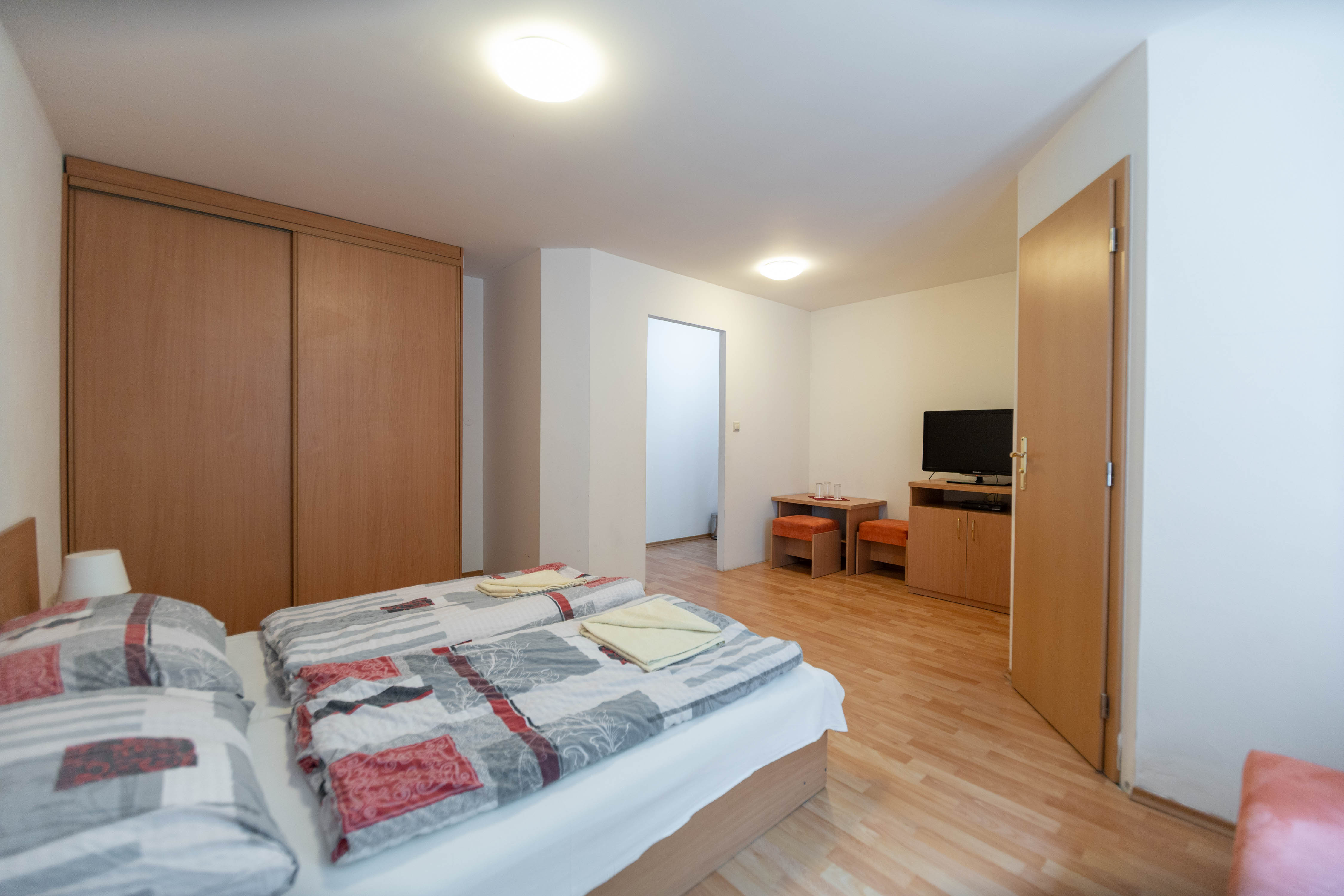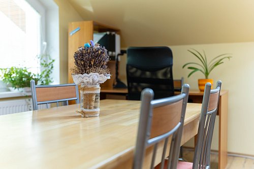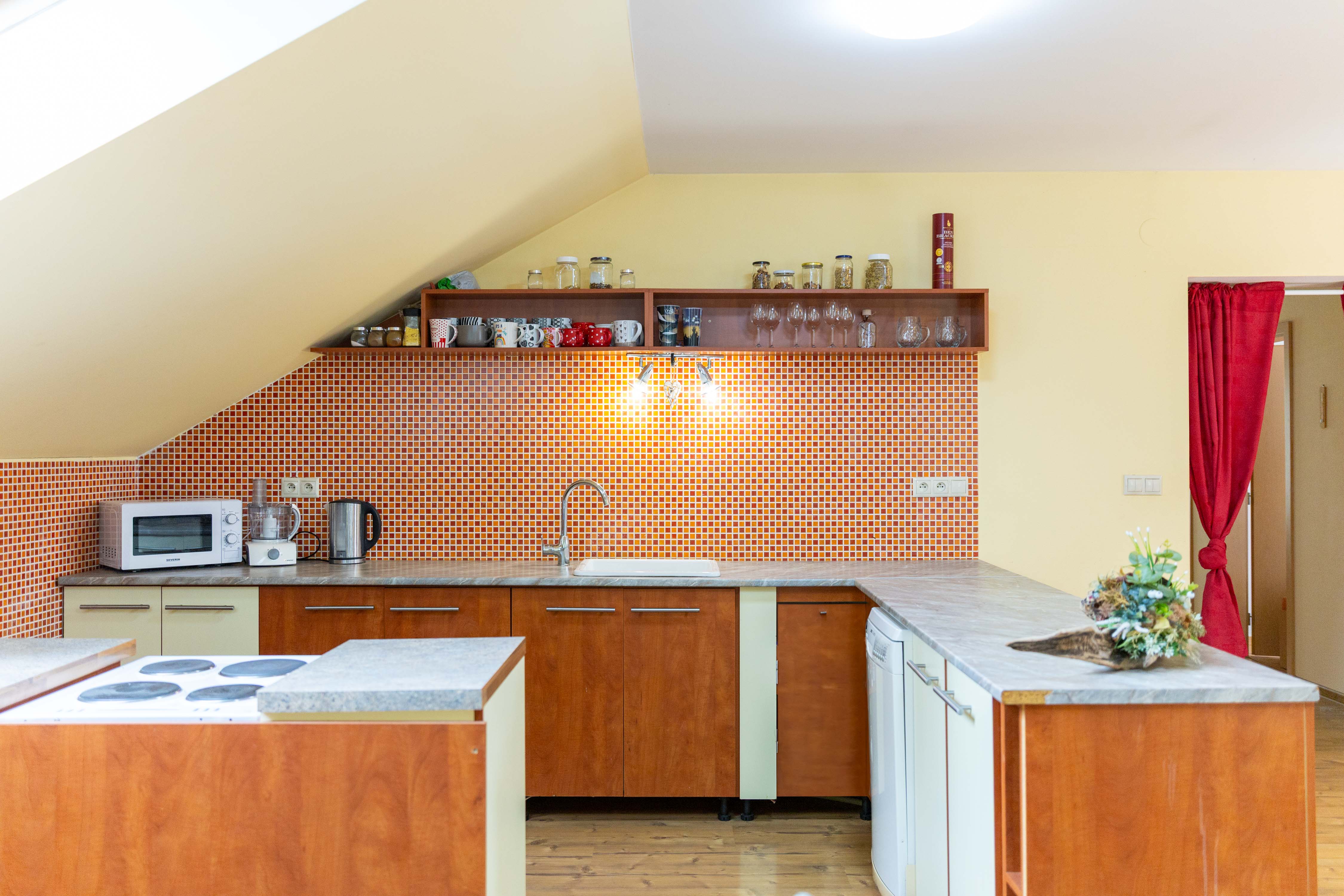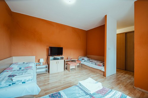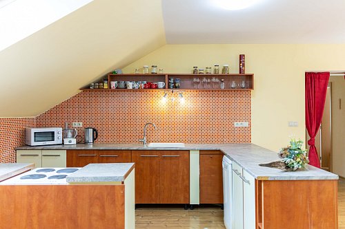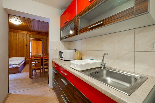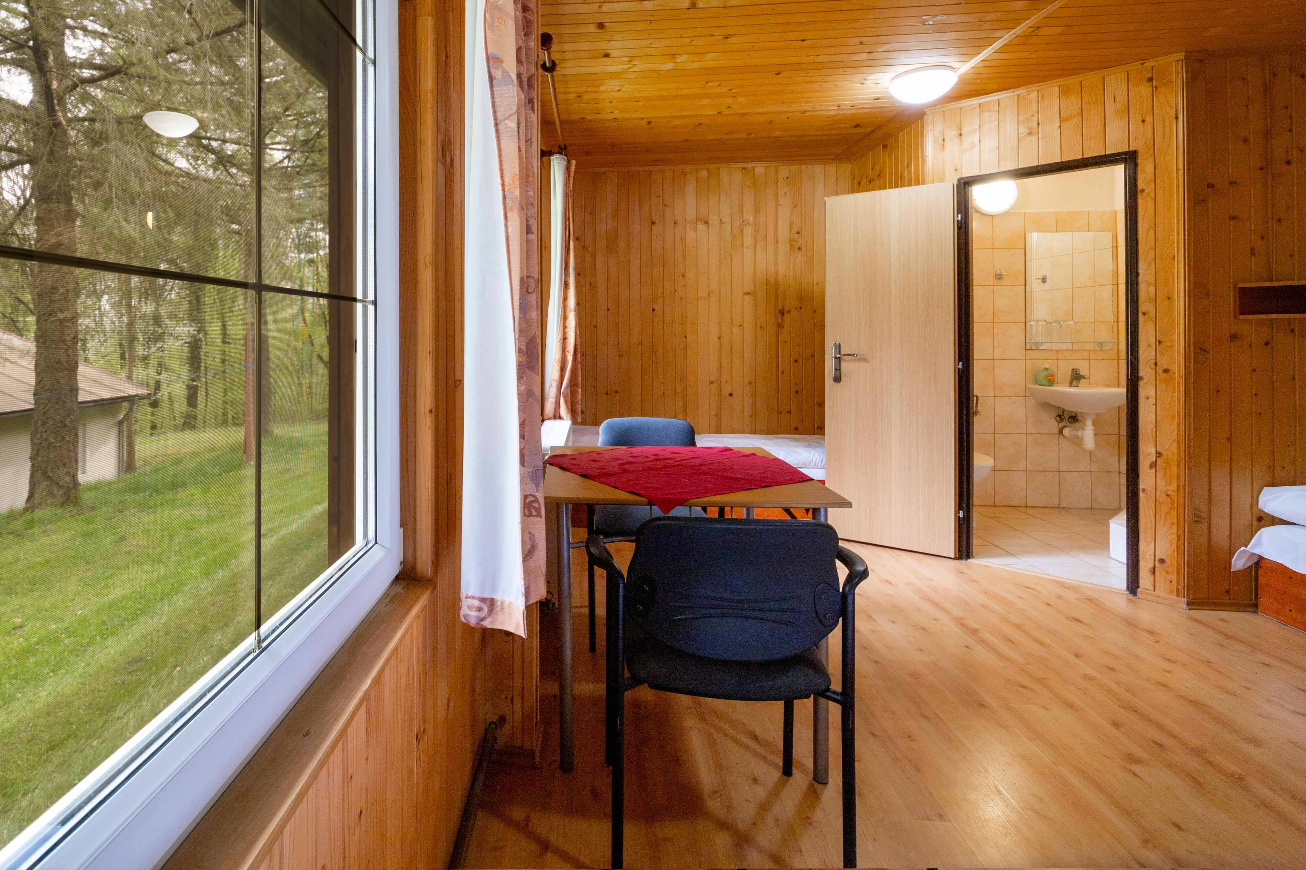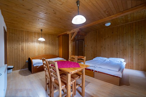 Súčasťou komplexu je aj hlavná budova – penzión – rozdelený na ubytovaciu a gastro časť. Ubytovacia časť ponúka tri samostatné izby s manželskou posteľou a prístelkou, každá s vlastnou kúpeľňou a televízorom, jeden apartmán s balkónom a výhľadom do prírody a plnohodnotný byt na poschodí s obývačkou spojenou s kuchyňou, dvoma spálňami, kúpeľňou a samostatným WC.